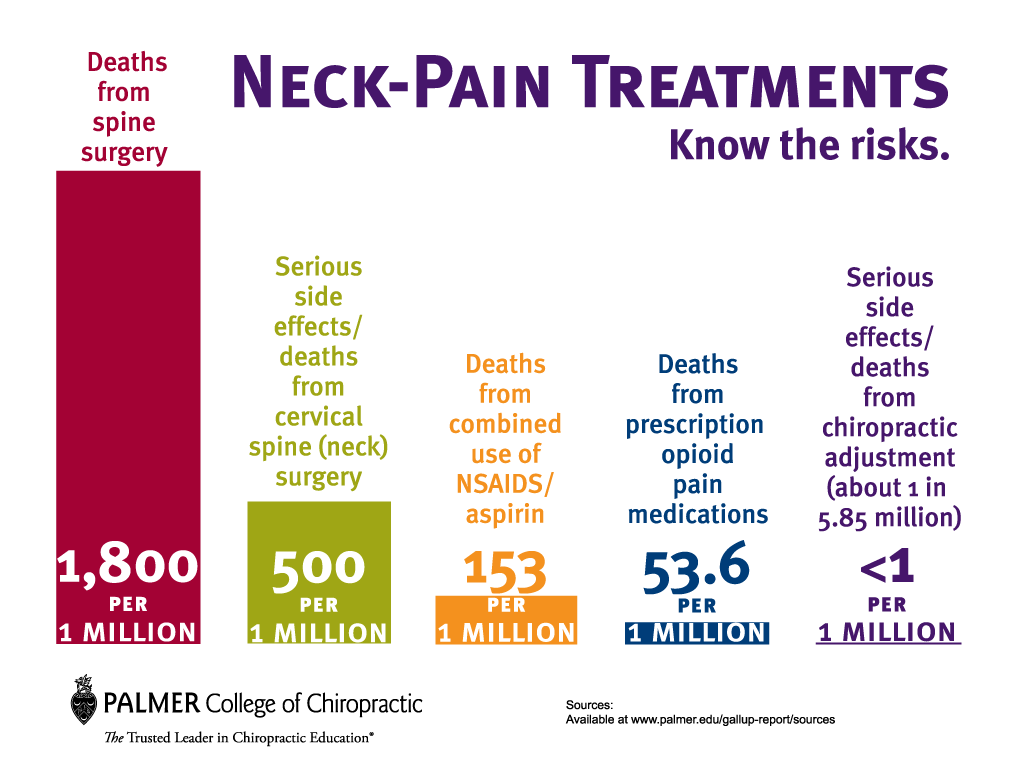 「首の治療法として知られている危険性としては、585万人に1人と他の治療法と比べても非常に少ない確率である。」